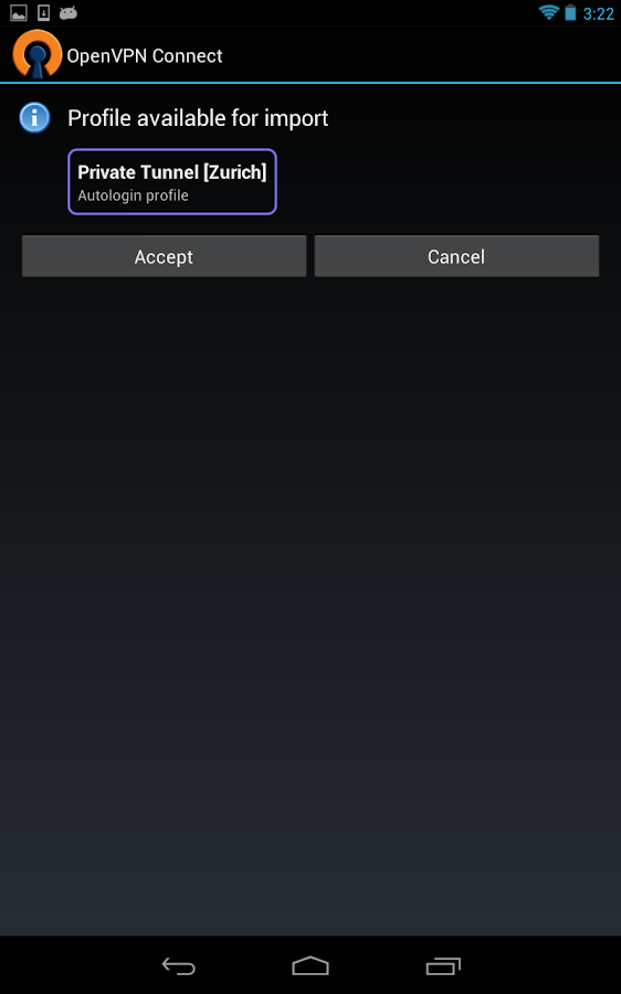 * Fácil de importar. Ovpn perfiles de tarjeta SD, OpenVPN Access Server, Túnel privado oa través de un vínculo navegador.